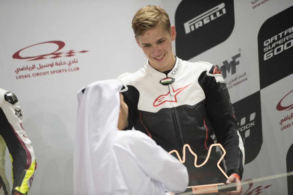 Nagy lehetőséget kapott Kovács Bálint csapatától azzal, hogy a téli felkészülési időszakban végig versenykörülmények között készülhetett fel a 2018-as feladataira. A H-Moto Team fiatalja ugyanis egy egész szezont teljesíthetett a katari nemzetközi bajnokság Superstock 600 kategóriájában. A 16 éves motoros egy Kawasaki nyergében az elmúlt versenyhétvégén már az utolsó, ötödik fordulót teljesítette a Losail Ázsia Bajnokságban. Természetesen Bálint most is mindent megpróbált megtenni a jó szereplésért, és pályafutása első éjszakai futamain katari szereplésének legjobb eredményét produkálta. Amíg az első versenyen ötödik rajtkockából indulva végül a pozícióját megtartva az ötödik helyen végzett, addig a második versenyen parádés teljesítményt nyújtva a harmadik helyen ért célba. A fiatal tehetség olyan mezőnyben állhatott fel a dobogóra, ahol olyanok találhatóak, mint a korábbi WSBK versenyző, Saeed Al Sulaiti, valamint a Moto2-ben is bemutatkozó Mashel Al Naimi. Bálint a hétvégi szereplésével összetettben a hatodik helyen végzett a Losail Ázsia Bajnokságban, és tökéletesen felkészülve várja a hazai és németországi versenyszezont.